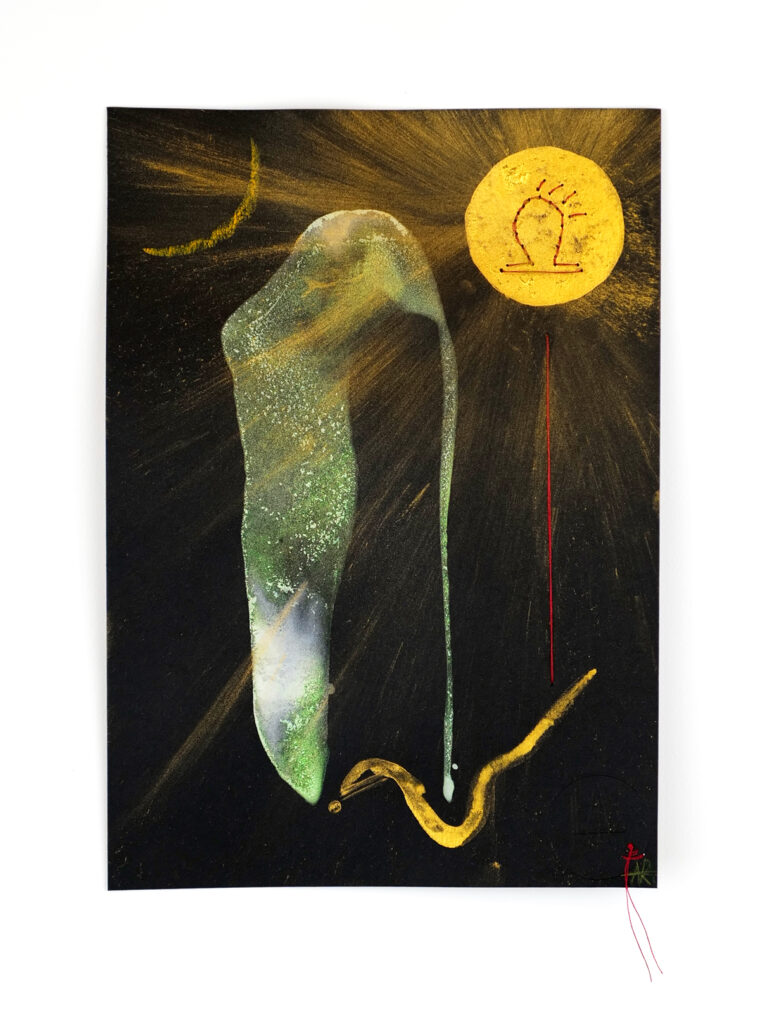 Technic Watercolor, pigment, ink, yarn, chalk on paper