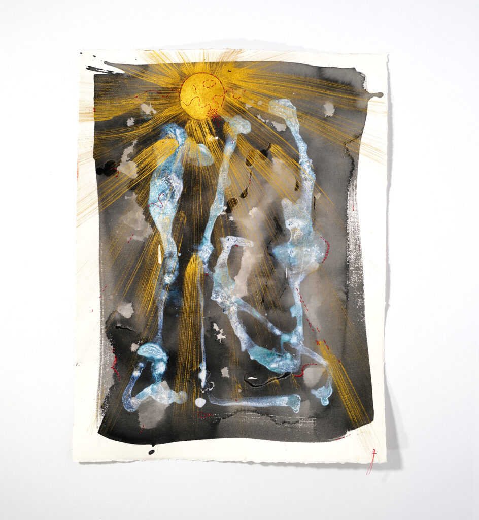 Technic Pigment, ink, yarn, shell, watercolor, acrylic on paper
